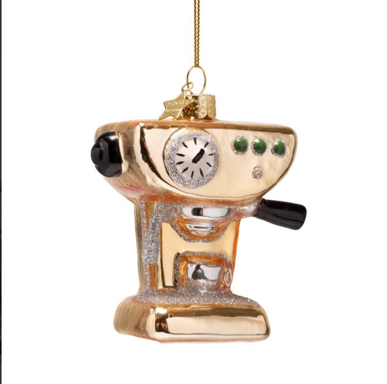 Decorate your Christmas tree with this adorable coffee machine ornament. Made of high-quality materials, this ornament adds a festive touch to your holiday decor. Perfect for coffee lovers, it also makes a great gift for friends and family. Bring joy and cheer to your home this holiday season.