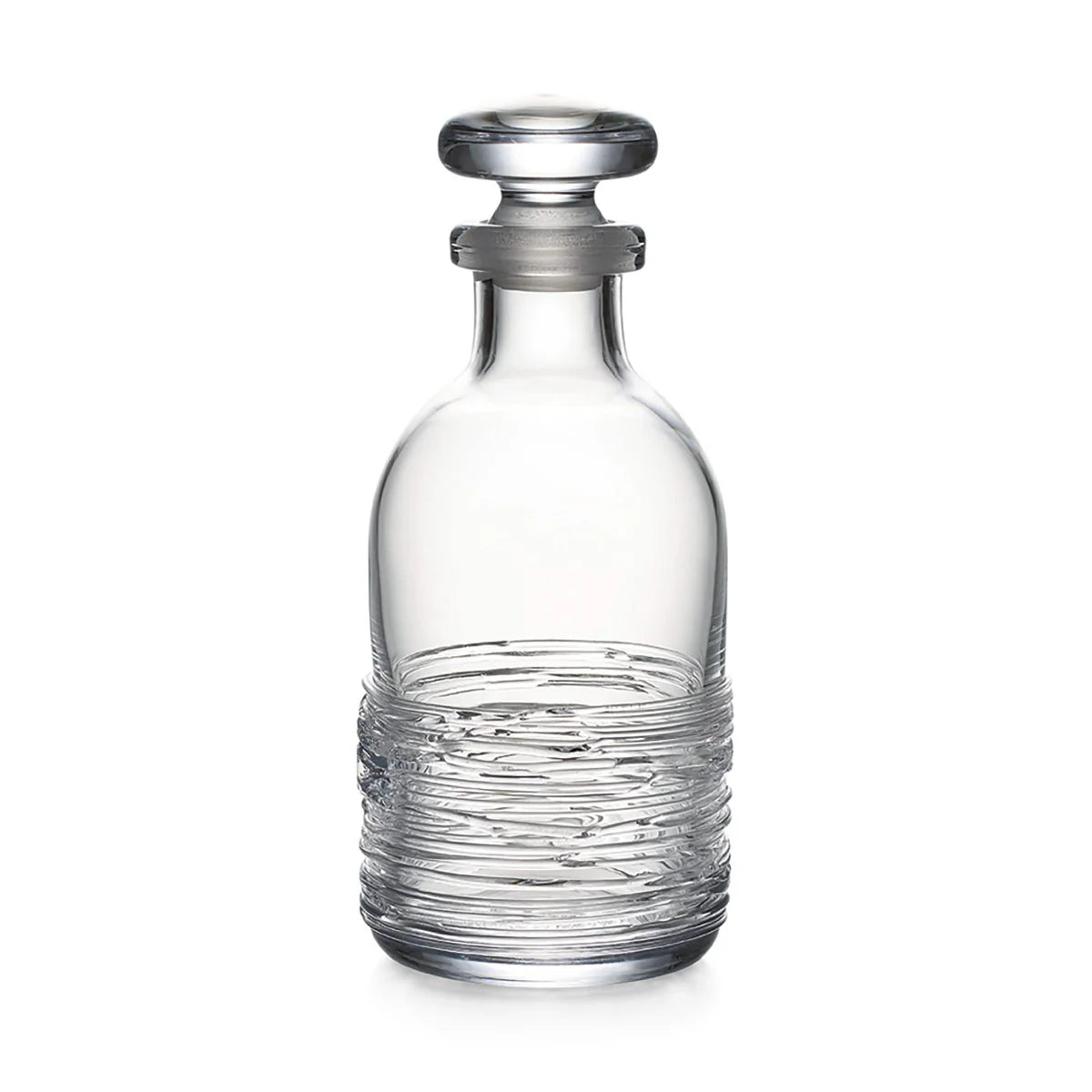 Frozen in winter, flowing in summer – our Echo Lake Collection is inspired by the constantly changing rivers, streams and waterways of Vermont. In a bold interpretation of the craft, master glassblowers nimbly wrap fine strands of glass around the bottom third of a cylindrical silhouette to form the unique, natural texture of this decanter.