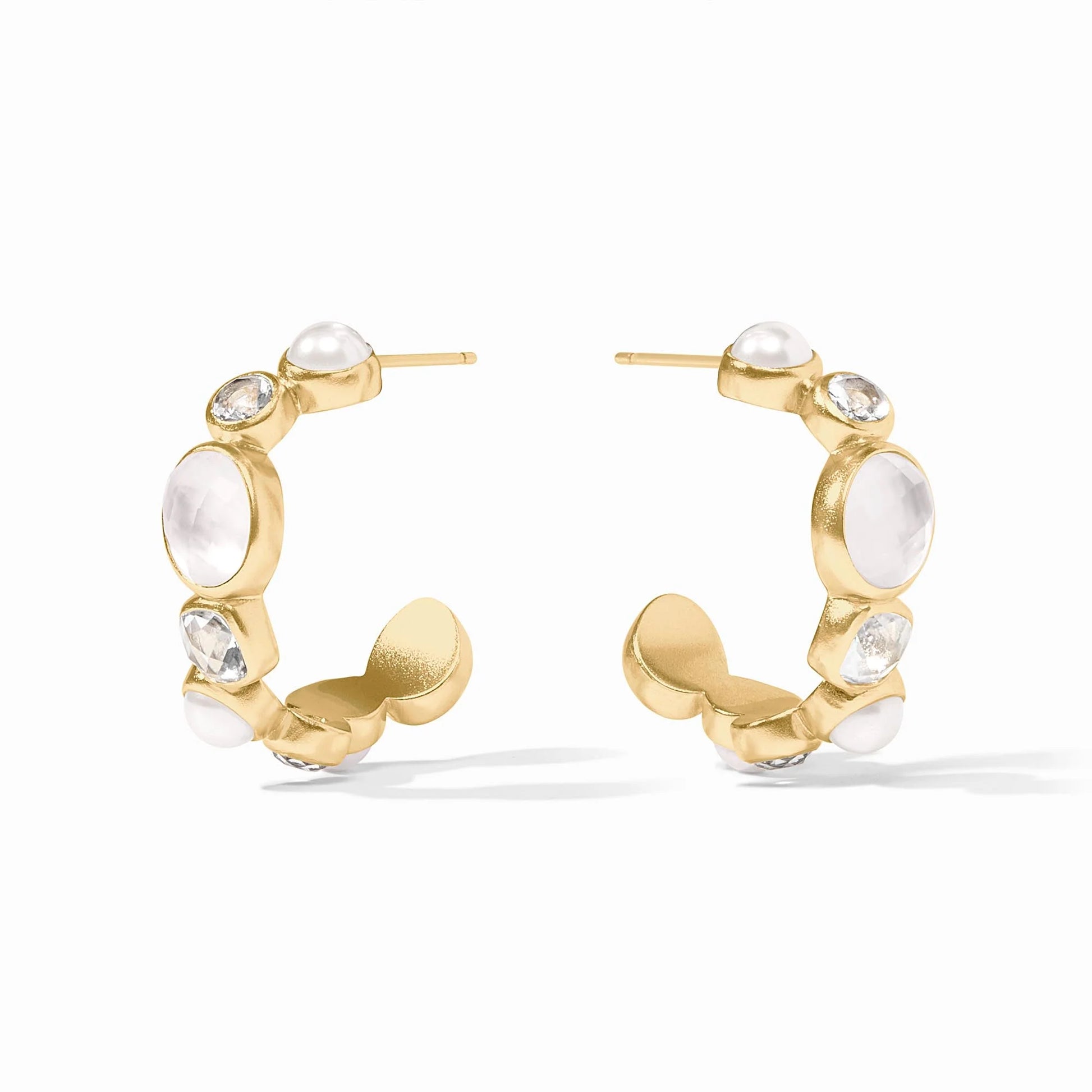 Like a meandering secret garden path, these hoops' flawlessly sparkling gold-set gemstones in varying sizes, shapes, and tones dance together in the sunlight.