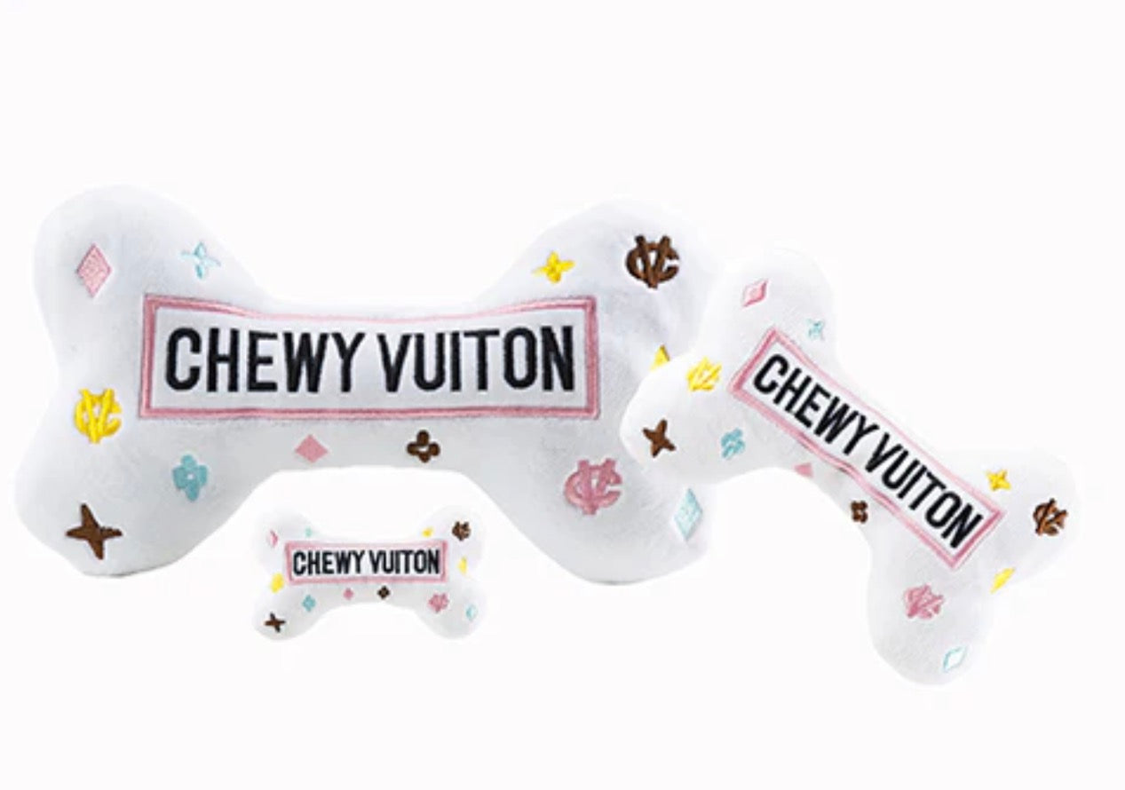 Throw your pooch the bone that will have the other dogs panting ‘chew-la-la!’ This Chewy Vuiton Bone Toy is presented in iconic white with tasteful accents dotting the plush exterior, letting your decadent doggy play in extravagance! And thanks to the captivating squeaker inside, this bone is as fun to chew as it is to flaunt!